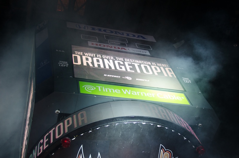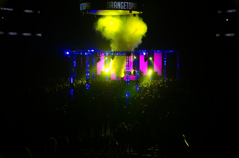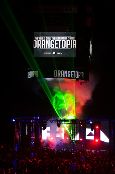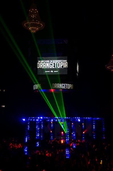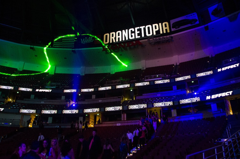 On February 11, 2012, ORANGETOPIA was more than just a dance, it was a destination. 2,000 glow sticks, 100 lights, 50 LED panels, 75 pounds of confetti, 8 streamer cannons, 5 chandeliers, 4 CO2 jets, 2 aerialist performers, 1 outdoor laser and over 2,200 students from 8 different high schools, made history on the floor of the Honda Center by becoming the first ever event of it's kind.